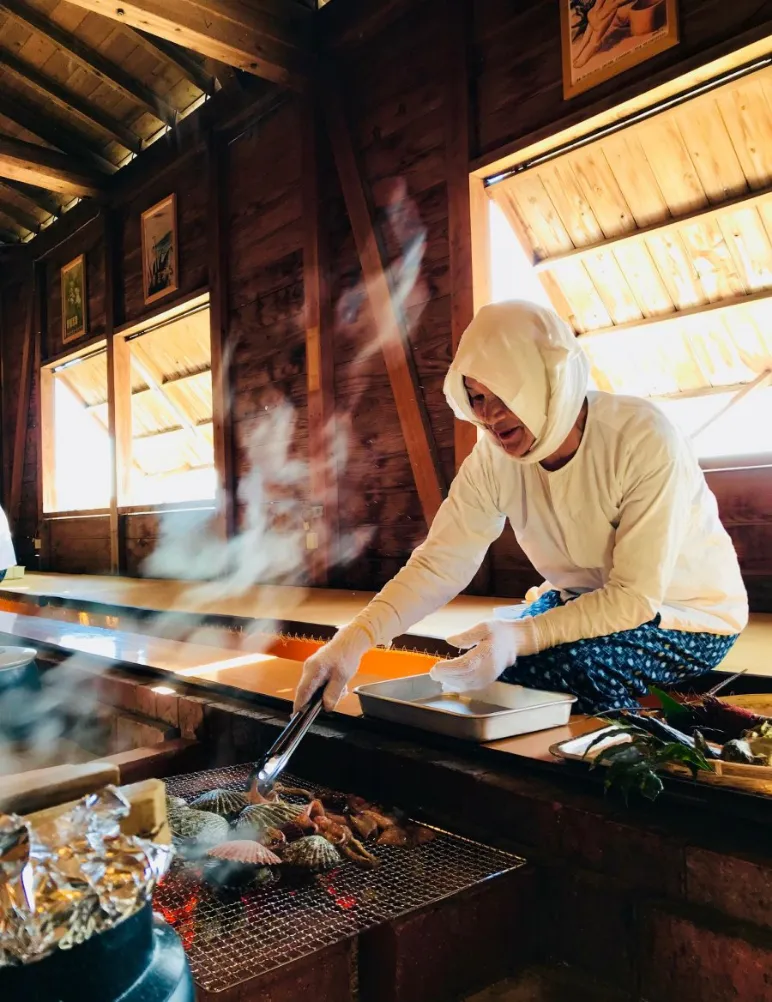 Across ISESHIMA, where there are some 500 Ama still working along the coast, it’s possible to arrange experiences with the Ama, whether that’s stopping for lunch at one of their fishing huts, signing up for a dive or joining them on a visit to a shrine, where they pray for safety at sea.