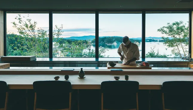 You can watch nature’s show unfold from private ensuite hot-spring baths—and in some rooms saunas—or from a rooftop lounge that delivers panoramic views. Or there are several hiking trails that start from the property, winding their way through primeval forest. It’s a place guests come to unwind, but like ISESHIMA itself, a place where you can feel ISESHIMA just as generations before have.